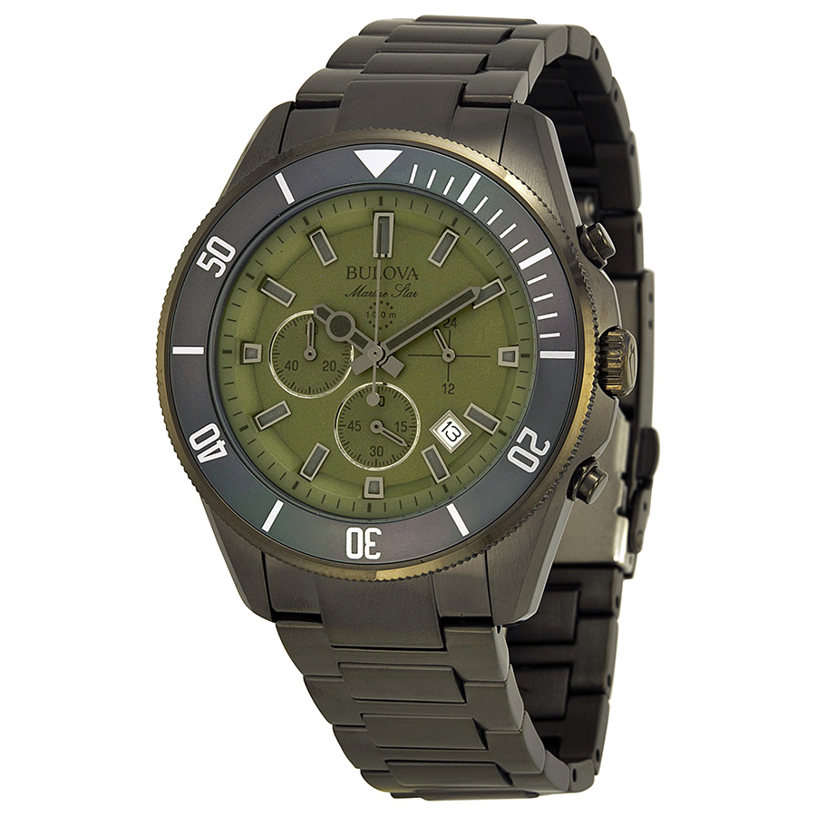 Bulova Marine Star Chronograph Green Dial Gunmetal Ion-plated Men's Watch is a Other watch with Quartz movement. It has a Scratch Resistant Mineral. Compare Bulova Marine Star Chronograph Green Dial Gunmetal Ion-plated Men's Watch watch functions, view pictures, prices and more. Find the best deals on Bulova Marine Star Chronograph Green Dial Gunmetal Ion-plated Men's Watch watches.