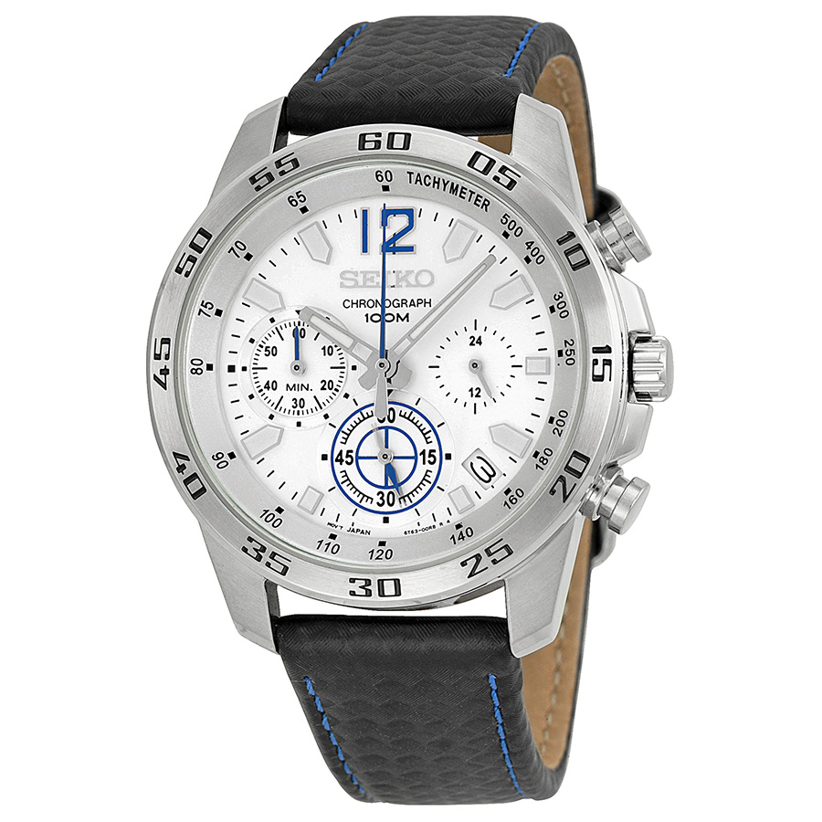 Seiko Chronograph White Dial Black Leather Men's Watch
