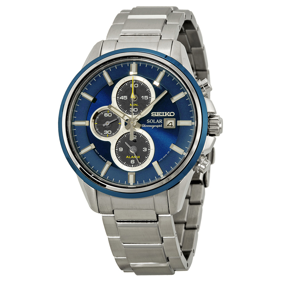 Seiko Solar Chronograph Blue Dial Stainless Steel Men's Watch